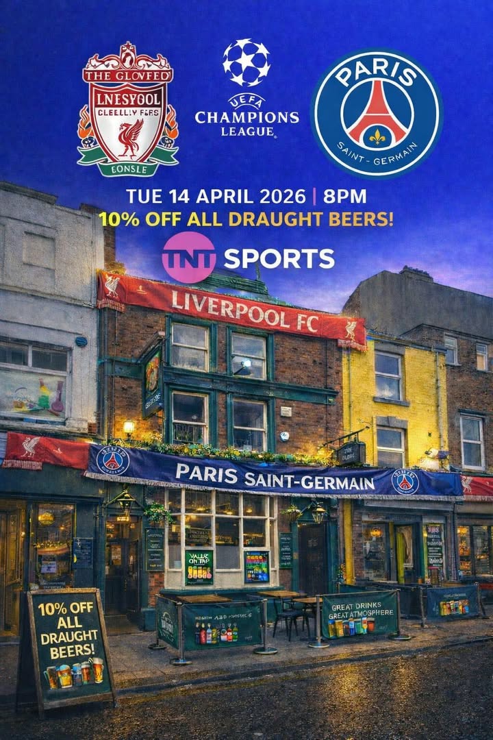 “Pints flowing, reds singing… Champions League at The Globe 🔴🍺”
