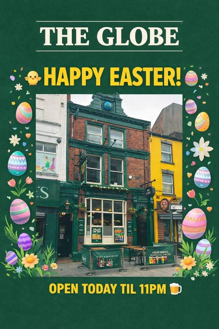 “Pints flowing, reds singing… Champions League at The Globe 🔴🍺”